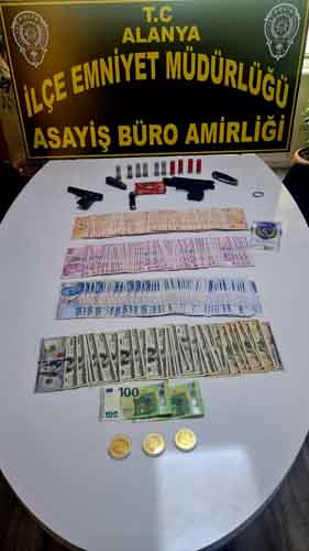 Alanya Cumhuriyet Başsavcılığı’nın talimatları doğrultusunda Alanya İlçe Emniyet Müdürlüğü görevlilerimizce yapılan çalışmalarda; İlçe Emniyet Müdürlüğüne müracaatta bulunan yabancı uyruklu (D.D.) isimli şahsın, kripto para borsası işi yaptığını Alanya'da turist olarak bulunduğunu arkadaşları ile Turistik amaçla gittikleri yerde, yabancı uyruklu 4 şahsın araçlarının yanına 2 araç ile gelerek önlerini kestiğini, şahıslardan birinin kendisini araçtan silah teşhir ederek zorla çıkartıp kendi araçlarına bindirdiklerini, Mahmutlar Mahallesine götürdüklerini, birilerinin işini engellediği bahanesi ile 30.000 $ istediklerini, korktuğu için kripto olarak 15.000 $’ı şahısların hesabına aktardığını , kendilerine 1 adet fişek vererek 'bunu hatıra olarak alın' dediklerini ve gittiklerini beyan ederek şikayetçi olması üzerine;