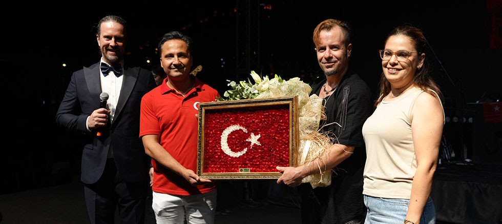 Konuşmaların ardından Başkan Vekili Haydar Uyar tarafından sanatçı Emre Aydın’a çiçek ve ipek kozasından yapılmış Türk bayrağı tablosu hediye edildi. Alanya’da olmaktan büyük mutluluk duyduğunu belirten sevilen sanatçı, en güzel şarkılarını alanı dolduran vatandaşlar için seslendirdi. Hem duygusal hem de hareketli şarkılar eşliğinde bayram coşkusu zirve yaptı. Emre Aydın, günün anlamına uygun birçok marşı da dinleyicilerle birlikte seslendirdi. Konser gecenin geç saatlerine kadar devam etti.