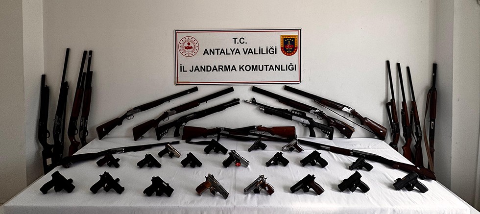 "Alanya Cumhuriyet Başsavcılığı talimatları doğrultusunda; bireysel silahlanma ile mücadele kapsamında Alanya İlçe J.K.lığı Asayiş Ekipleri, JASAT, İstihbarat ve KOM ekiplerince ruhsatsız silah ve mühimmat bulunduran şüphelilere yönelik icra edilen operasyon neticesinde;