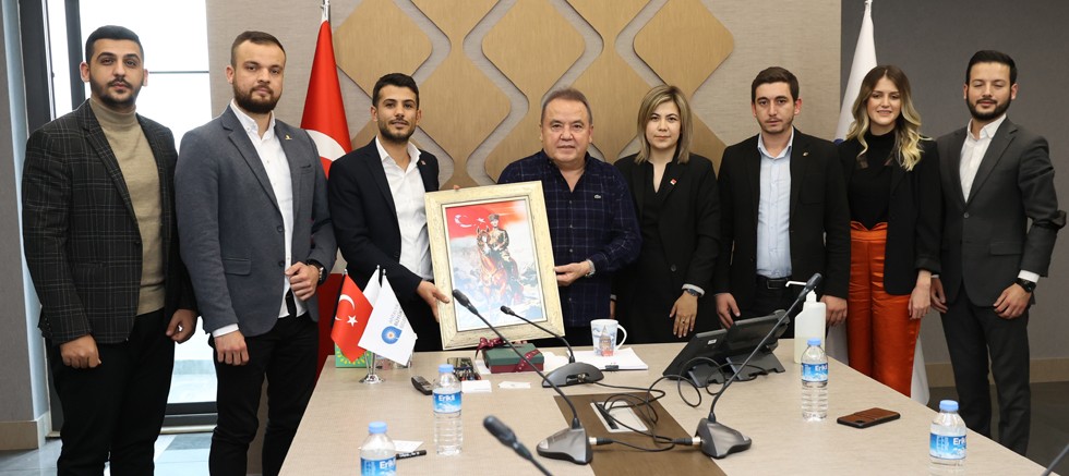 Antalya Büyükşehir Belediye Başkanı Muhittin Böcek makamında gençleri ağırladı. CHP Alanya Gençlik Kolları Başkanı Birkan Ceylan ve yönetimi Başkan Böcek’i ziyaret etti.