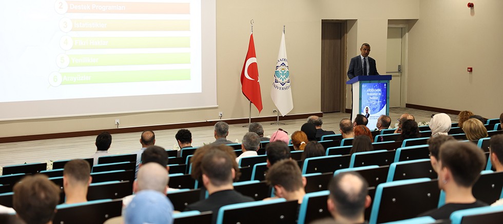 Alanya Alaaddin Keykubat Üniversitesinde (ALKÜ) düzenlenen ARDEB Destek Programları ve Yenilikler isimli konferansta ARDEB Başkan Yardımcısı Doç. Dr. Cengiz Arıcı, TÜBİTAK tarafından verilen destekleri detaylarıyla anlattı.