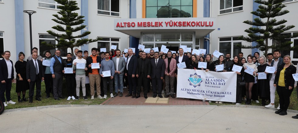 Alanya Alaaddin Keykubat Üniversitesi (ALKÜ) Alanya Ticaret ve Sanayi Odası (ALTSO) Muhasebe ve Vergi Bölümü öğrencileri, üniversite - sektör iş birliği kapsamında 2023-2024 eğitim öğretim yılı güz döneminde Öğr. Gör. Erdal Yenialp tarafından verilen “Bilgisayarlı Muhasebe-I” dersi içeriğinde eğitimini aldıkları “DIA Muhasebe Programı” sertifikalarını aldılar. DİA yazılım Çözüm Ortağı Armada Bilişim firmasının desteğiyle ücretsiz olarak verilen sertifikalar için ALTSO Meslek Yüksekokulunda bir tören düzenlendi. Bu yıl 4’üncüsü düzenlenen törene, ALKÜ Rektör Yardımcısı Prof. Dr. Mehmet Kılıç, ALTSO MYO Müdürü Doç. Dr. Eray Bayramol, Muhasebe ve Vergi Bölümü Öğretim Elemanları, DİA Kanal Yöneticisi Cenk Çobanoğlu, DİA Yetkili Çözüm Ortağı ve ARMADA Bilişim firma sahibi Zafer Cengiz, Soner Çalık, akademisyenler ve öğrenciler katıldı.