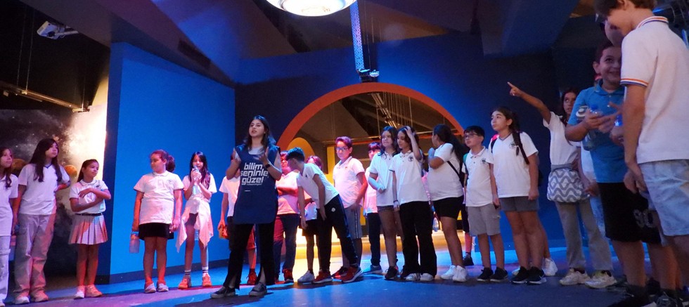 Gök bilimine meraklı çocuklar, Antalya Bilim Merkezi’nde evrenin en ihtişamlı patlaması olan süpernovaları öğrenirken analitik düşünme becerisi kazanıyor.