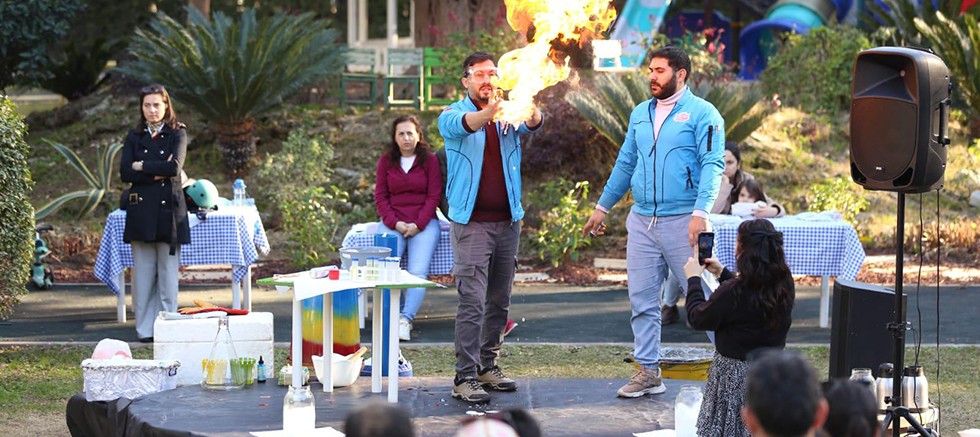 Matematik, ahşap tasarım, astronomi, fen bilimleri, robotik kodlama ve STEM atölye çalışmaları etkileyici Bilim Şov ile taçlandırıldı. “Müzede Bilim Günü” etkinliği kapsamında, Anadolu Oyuncak Müzesi bahçesinde keyifli bir bilim şov düzenlendi. Önce uzay temalı tişörtler boyandı, ardından sıvı azot, kuru buz ve farklı kimyasal maddelerle yapılan deneyler, hem çocuklar hem de aileleri için büyüleyici bir atmosfer oluşturdu.