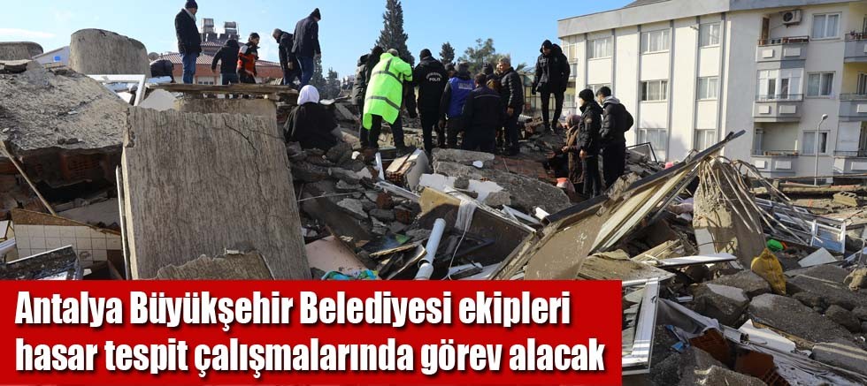 Deprem afetinin yaşandığı ilk günden itibaren bölgede pek çok alanda yardım ve desteklerini sürdüren Antalya Büyükşehir Belediyesi deprem hasar tespit çalışmalarında da görev alacak.