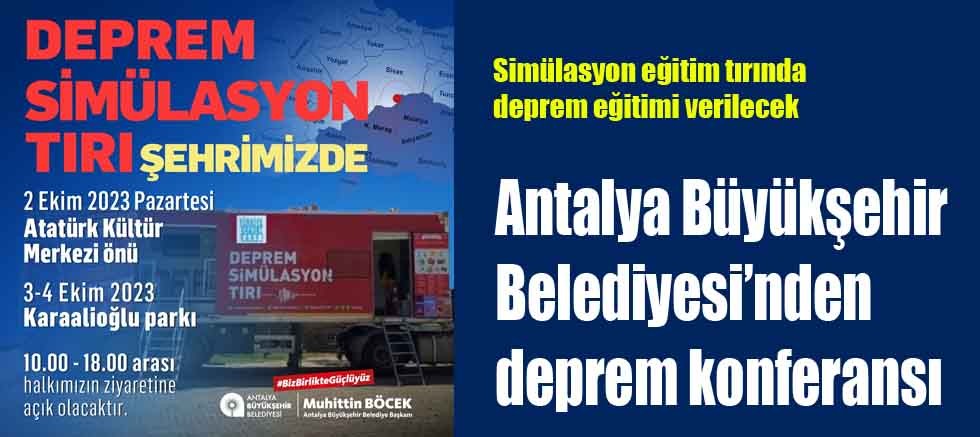 Konferansta deprem teknik boyutuyla ele alınırken, vatandaşlara yönelik olarak da deprem bilinci ve farkındalığı ile depremden önce, sırasında ve sonrasında neler yapılabileceği konusunda çalışmalar yapılacak. Deprem bilincini arttırmak ve vatandaşlara deprem anında sergilenmesi gereken doğru davranışları göstermek amacıyla getirilen deprem simülasyon tırı; 2 Ekim 2023 tarihinde Antalya Atatürk Kültür Merkezi önünde, 3-4 Ekim 2023 tarihleri arasında ise Antalya Karaalioğlu Parkı’nda 10.00-18.00 saatleri arasında ücretsiz olarak hizmet verecek.