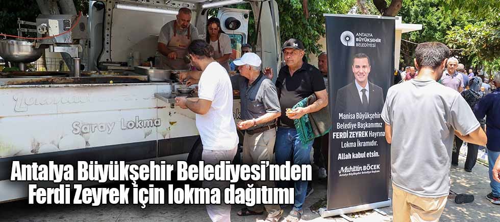Antalya Büyükşehir Belediyesi, geçtiğimiz günlerde hayatını kaybeden Manisa Büyükşehir Belediye Başkanı Ferdi Zeyrek’in hayrına kentin üç farklı noktasında lokma dağıtımı gerçekleştirdi. Vatandaşların yoğun ilgi gösterdiği lokma dağıtımlarında, Zeyrek için dualar edildi.