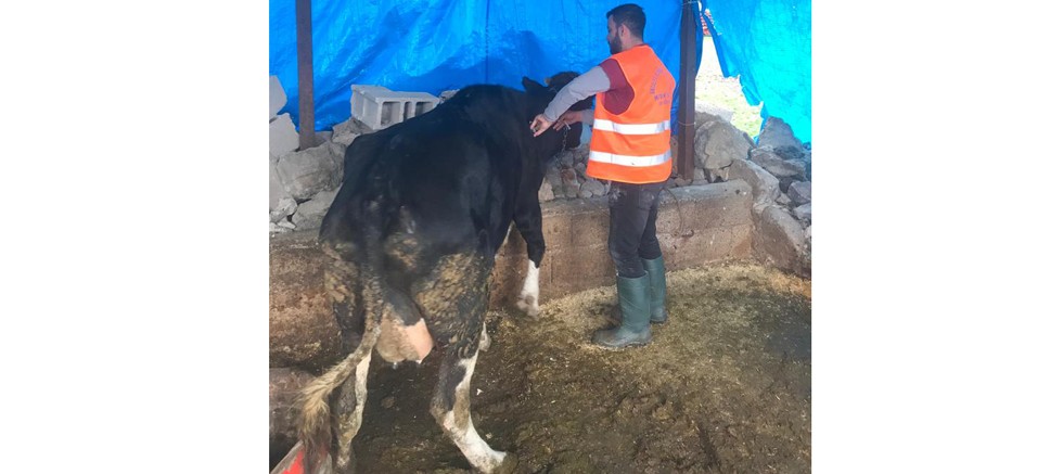 Antalya Büyükşehir Belediyesi veterinerleri depremden etkilenen Gaziantep’te küçükbaş ve büyükbaş hayvanların kontrol ve muayenesini yaparken, hastalıkların da tedavisini gerçekleştiriyor.