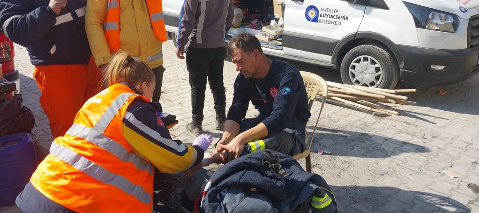 Ekipte görevli paramedik Süheyla Erol çalışmalarda görev alan arama kurtarma personelinin de zaman zaman yoğun çalışmaya bağlı tansiyon düşmesi gibi durumlarla karşı karşıya kaldığını belirterek onlara da ilk müdahaleyi gerçekleştirdiklerini söyledi. Enkazda meydana gelen yaralanmalara da müdahale eden Antalya Büyükşehir Belediyesi paramedik ve hemşireleri pansuman ve dikiş gibi ilk müdahaleleri gerçekleştirdi.