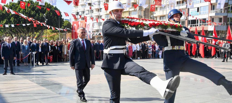 Törende Vali Ersin Yazıcı ve Antalya Büyükşehir Belediye Başkanı Muhittin Böcek’in meydandaki Atatürk Anıtına çelenk sunmasının ardından Saygı Duruşu ve İstiklal Marşı’nın okunmasıyla sona erdi.