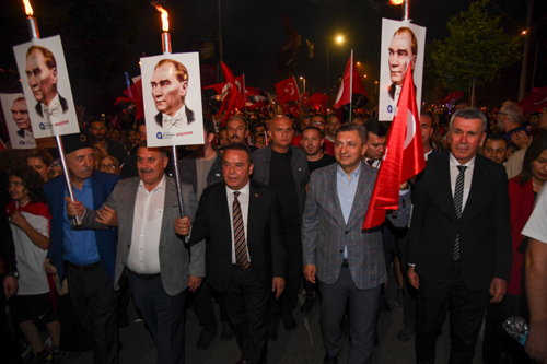 Her yaştan Antalyalının Türk Bayrakları ve meşaleler eşliğinde akın ettiği fener alayı büyük bir coşkuyla gerçekleşti.