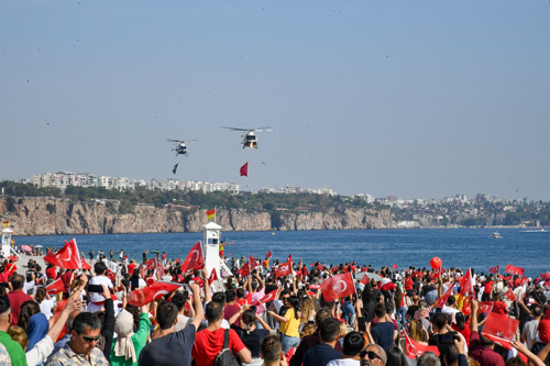 29 Ekim Cumhuriyet Bayramı ve Türkiye Cumhuriyeti'nin kuruluşunun 100'üncü yıl dönümü münasebetiyle, Antalya'da havada, karada ve denizde çeşitli etkinlikler düzenlenmeye devam ediyor. Türkiye Cumhuriyeti’nin kuruluşunun 100’üncü yıl dönümü etkinlikleri çerçevesinde 4 adet F-16 savaş uçağı Antalya şemalarında gösteri uçuşu gerçekleştirdi.