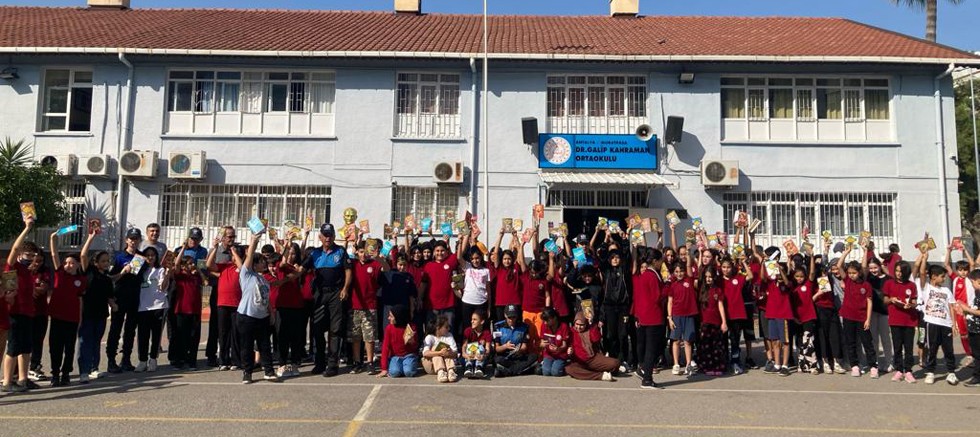 Toplum Destekli Polislik Şube Müdürlüğümüzce yürütülmekte olan “Antalya’da Güvenli Yarınlara” adlı ÇOGEP (Çocuk ve Gençler Sosyal Koruma ve Destek Programı) projesi kapsamında, geleceğimizin teminatı olan çocuk ve gençlerimizin milli kimlik ve aidiyet duygularını geliştirmek ve kitap okuma alışkanlığı kazandırmak amacıyla; 10 Ekim 2023 Salı günü Dr. Galip Kahraman Ortaokulunda öğrencilerimize kitap hediye edilerek kitap okuma etkinliği düzenlenmiş ve genel güvenlik tedbirleri hakkında bilgilendirme yapılmıştır