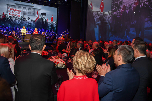 Resepsiyon salonuna cumhuriyet tarihimizin görsellerinin yansıtılmasıyla ve sunucuların anlatımıyla seslendirilen film davetlilerin beğenisini topladı. Tarihi opera binası görüntüsünün yansıtıldığı salonda Antalya Devlet Opera ve Balesi sanatçılarının konseri ise davetlilerin heyecan ve coşkusunu taçlandırdı.