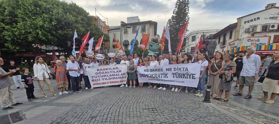 Antalya Emek ve Demokrasi Güçleri, CHP İstanbul İl Başkanı Özgür Çelik ve İl Yönetim Kurulu’nun görevden alınmasına, yerine kayyum atanmasına ve yaşanan polis şiddetine karşı bir basın açıklaması yaptı. Attalos Anıtı önünde gerçekleşen açıklamayı KESK Antalya Şubeler Platformu Dönem Sözcüsü Devrim Mol okudu.