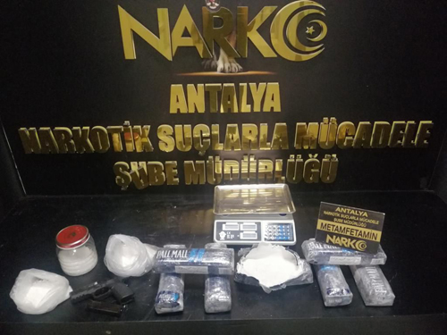 Antalya'da Narkotik Suçlarla Mücadele Şube Müdürlüğü ekiplerince uyuşturucu madde satan, ticaretini yapan, nakleden şahıs ve grupların yakalanmasına yönelik yapılan çalışmalar sonucunda 6 kilo 512 gram metamfetamin maddesi ele geçirildi.