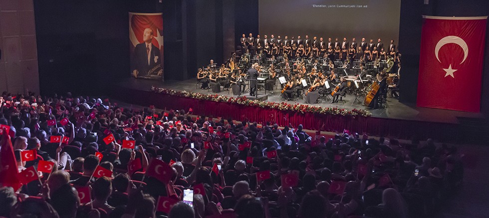 Cumhuriyetimizin kuruluşunun 101. yıl dönümünde Antalyalı sanatseverler, Antalya Devlet Opera ve Balesi'nin düzenlediği gurur dolu bir konserle 29 Ekim Cumhuriyet Bayramı’nı kutladı. Seyirciler ‘Cumhuriyet Bayramı Konseri’ ile müziğin büyüleyici dünyasında yol alırken, Atatürk’ün ‘En büyük eserim’ dediği Cumhuriyetimizi 101. kez kutlamanın coşkusu yaşadı.