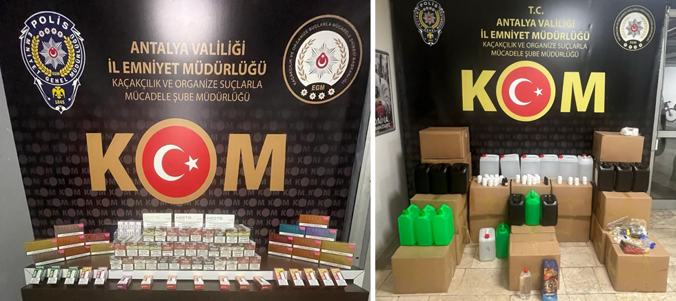 "Antalya Cumhuriyet Başsavcılığı’nın talimatları doğrultusunda, Kaçakçılık ve Organize Suçlarla Mücadele Şube Müdürlüğü görevlilerimizce kaçakçılık faaliyetlerine yönelik yapılan çalışmalarda;