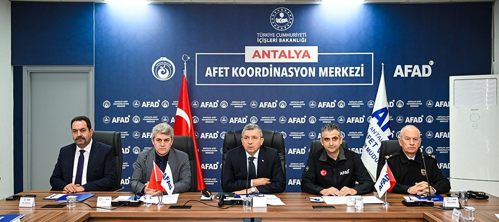 Antalya Valisi Hulusi Şahin başkanlığında kış ayında olası afet ve acil durumlara yönelik planlama ve uygulamaların değerlendirildiği İl Afet ve Acil Durum Koordinasyon Kurulu Toplantısı gerçekleştirildi.