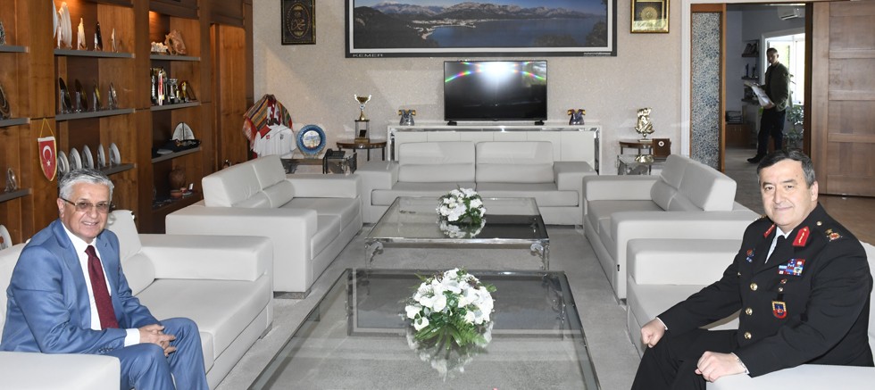 Antalya İl Jandarma Komutanı Tuğgeneral Yavuz Özfidan, Kemer Belediye Başkanı Necati Topaloğlu’na iade-i ziyarette bulundu.