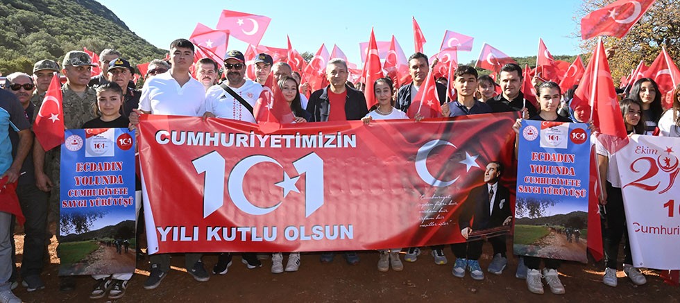 29 Ekim Cumhuriyet Bayramı'nın 101. yıl dönümü kapsamında Topçu Yüzbaşı Mustafa Ertuğrul Aker ve 1. Dünya Savaşı'nda Kaş'taki topçu bataryalarında ebediyete göçen 37 şehidimiz anısına 'Ecdadın Yolunda Cumhuriyete Saygı Yürüyüşü' gerçekleştirildi.