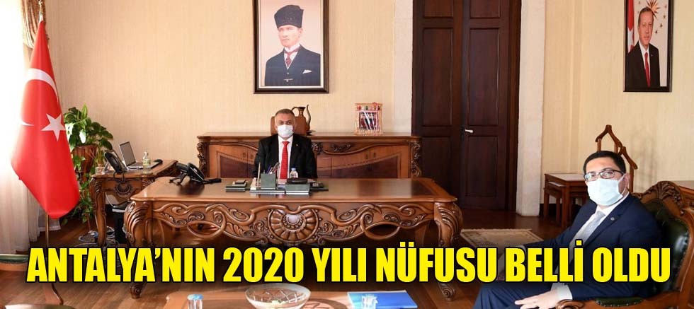 Türkiye İstatistik Kurumu Antalya Bölge Müdürü Muhammet İlyas Uysal, Vali Ersin Yazıcı’yı ziyaret ederek, 2020 yılı adrese dayalı nüfus kayıt sistemi verilerini iletti. Sonuçlara göre Antalya nüfusu 2020 yılında bir önceki yıla göre %1,5 oranında artarak 2.548.308 oldu.