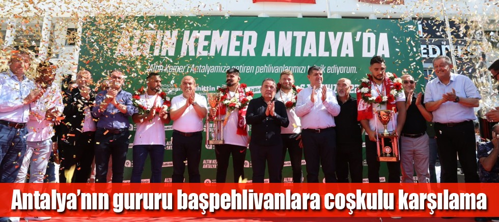 Döşemealtı ilçesi girişinde güreş severler tarafından coşkuyla karşılanan Antalya Büyükşehir Belediyesi ASAT Spor Kulübü güreşçileri Kırkpınar Başpehlivanı Cengizhan Şimşek, ikinci Mustafa Taş ve başaltından başpehlivanlığa yükselen Mustafa Doğan Özkaya, hocaları Ufuk Atalan ve güreş koordinatörü Hasan Aydın otobüs üzerinden Antalya halkını selamladı. Şampiyon başpehlivanlar, Antalyalıların alkışları eşliğinde konvoyla Antalya Büyükşehir Belediyesi’ne geldi. Büyükşehir Belediyesi önünde düzenlenen karşılama törenine Antalya Büyükşehir Belediye Başkanı Muhittin Böcek, Antalya Milletvekilleri Cavit Arı, Aydın Özer, CHP İl Başkanı Nuri Cengiz, İYİ Parti İl Başkanı Mehmet Başaran ile çok sayıda güreş sever katıldı. Törende, Kırkpınar’da üçüncülüğü elde eden Büyükşehir Belediyesi başpehlivanı İsmail Balaban da hazır bulundu.
