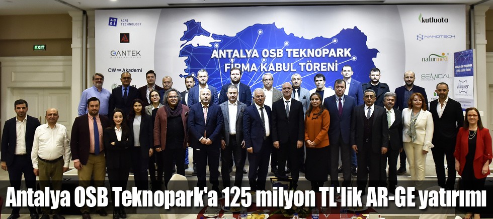 Antalya OSB Teknoloji Geliştirme Bölgesine kendi Ar-Ge binalarını kuracak 13 firma, düzenlenen törenle Antalya OSB Teknopark bünyesine dahil oldu. Sağlık, yazılım-otomasyon, biyoteknoloji, tarım, savunma sanayi ve enerji sektörlerinde faaliyet gösteren 13 firma, Antalya’ya 125 milyon TL’lik Ar-Ge yatırımı yapacak.