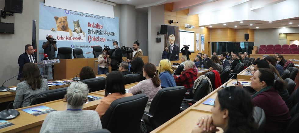 Antalya Büyükşehir Belediyesi, kentteki sahipsiz hayvan sorunlarını tespit etmek ve kamuoyunda farkındalık oluşturmak, diğer kamu kuruluşları, üniversiteler, sivil toplum kuruluşları ve hayvanseverler arasında işbirliği çalışmalarını desteklemek amacıyla "Antalya Sahipsiz Hayvan Çalıştayı" düzenledi. Çalıştaya, Antalya Büyükşehir Belediye Başkanı Muhittin Böcek, Antalya Veteriner Hekimler Odası Başkanı Murat Karabayoğlu, Türkiye Hayvanları Koruma Derneği Antalya Temsilcisi Sevda Kıraç, dernekler, üniversiteler, meslek odaları, kamu kurumlarından temsilciler ve hayvanseverler katıldı.