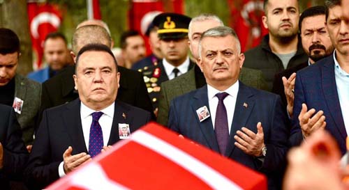 Vali Ersin Yazıcı, görev için gittiği Mersin’den, Aydın’a dönerken geçirdiği trafik kazası sonrası şehit olan Jandarma Astsubay Kıdemli Başçavuş İlhan Kesekler’in Antalya’da düzenlenen cenaze törenine katılarak, şehidimizi son yolculuğuna uğurladı.
