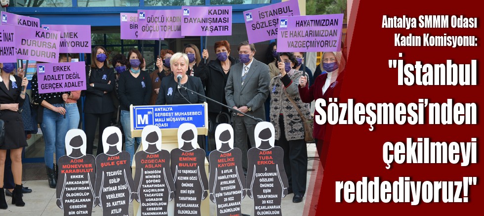 Antalya Serbest Muhasebeci Mali Müşavirler Odası (ASMMMO) Kadın Komisyonu, İstanbul Sözleşmesi'nin fesih kararına tepki gösteren bir basın açıklaması yayınladı. Yapılan açıklamada şöyle denildi: