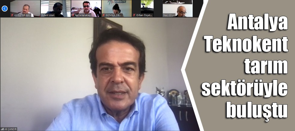 Antalya Tarım Konseyi ve Antalya Teknokent A.Ş. tarafından düzenlenen “Antalya Teknokent ve Tarım Sektörü İşbirliği Toplantısı” çevrimiçi yapıldı. Antalya Ticaret Borsası ve Antalya Tarım Konseyi Başkanı Ali Çandır, Tarım ve Orman İl Müdürü Gökhan Karaca, Teknokent Genel Müdürü İbrahim Yavuz, Akdeniz Üniversitesi’nden akademisyenler, Teknokent bünyesindeki firmalar ile tarım sektöründen temsilcilerin katıldığı toplantıda, Antalya Teknokent ve tarım sektörü işbirliği olanakları gündeme geldi.