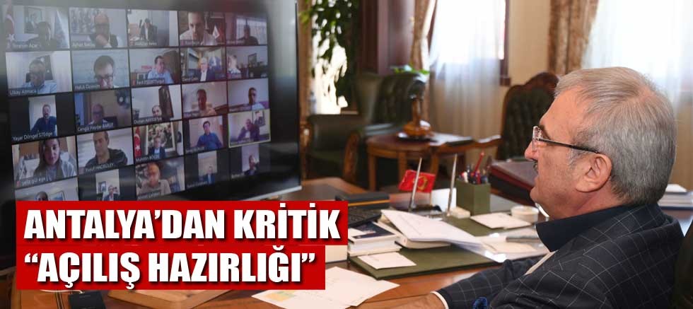 Vali Münir Karaloğlu başkanlığında her ay düzenli olarak yapılan turizm sektör toplantısı korono virüs nedeniyle bu ay video konferans toplantısı olarak yapıldı. Toplantıya Vali Münir Karaloğlu’nun yanı sıra, Antalya Büyükşehir Belediye Başkanı Muhittin Böcek, İl Kültür ve Turizm Müdürü İbrahim Acar, Antalya Ticaret ve Sanayi Odası (ATSO) Başkanı Davut Çetin, Akdeniz Turistik İşletmeciler ve Otelciler Birliği (AKTOB) Başkanı Erhan Yağcı, Türkiye Otelciler Federasyonu (TÜROFED) Başkanı Sururi Çorabatır, Antalya Tanıtım Vakfı (ATAV) Başkanı Yeliz Gül Ege ve sektör temsilcileri katıldı.
