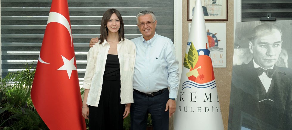 Kemer Belediyesi’ne ait eğitim kursunda üniversiteye hazırlık kapsamında ücretsiz eğitim alan ve girdiği üniversite sınavında Türkiye 117’ncisi, Antalya ve Kemer birincisi olan Şevval Yağmur Öztürk, Kemer Belediye Başkanı Necati Topaloğlu’nu makamında ziyaret etti.