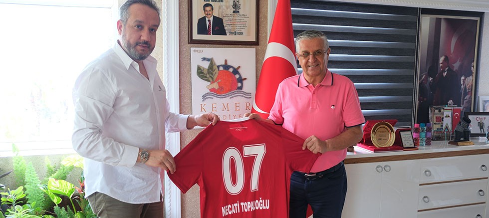 Süper Lig’de mücadele eden Antalyaspor Kulübü Başkanı Sinan Boztepe, Kemer Belediye Başkanı Necati Topaloğlu’na nezaket ziyaretinde bulundu.