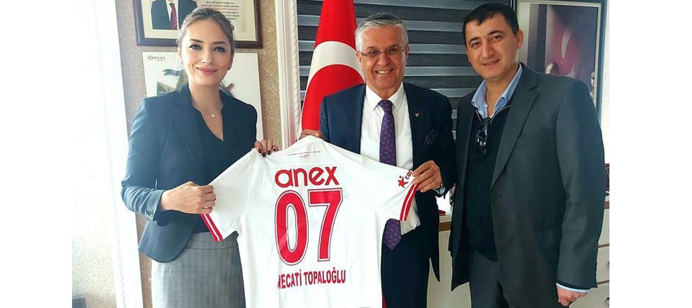 Ziyaret sonrası Antalyaspor Proje Müdürü Burcu Zaman, Necati Topaloğlu yazılı Antalyaspor formasını Başkan Topaloğlu’na hediye etti.