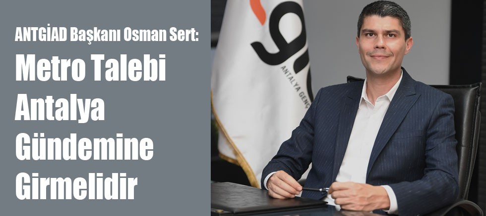Antalya Genç İş İnsanları Derneği (ANTGİAD) Yönetim Kurulu Başkanı Osman Sert, Antalya’nın sürekli göç alan ve her yıl on milyonlarca misafire ev sahipliği yapan bir kent olduğunu belirterek “ilimizdeki araç trafiği mevcut kapasitenin kaldıramayacağı boyutlara gelmiş durumdadır. Artık siyaset üstü bir anlayışla yapısal adımlar atılmalıdır. Kentin doğusu ile batısını bağlayacak bir metro yatırımının temellerinin yerel ve merkezi yönetim iş birliğinde süratle atılması gerektiğine inanıyoruz” dedi.