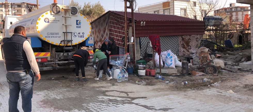 Antalya Büyükşehir Belediyesi Antalya Su ve Atıksu İdaresi Genel Müdürlüğü (ASAT) ekipleri Hatay’a depremin ilk gününden bu yana çöken şebeke suyunu hayata geçirmek için çalışıyor. Temiz suya ulaşılmasının olası salgın hastalıkların önüne geçilmesi için büyük önem taşıması nedeniyle depremin hemen ardından kolları sıvayan ASAT ekipleri, geceli gündüzlü bir çalışma sergiliyor. Depremin ilk günlerinde Hatay Büyükşehir Belediyesi’nin Hatsu Genel Müdürlüğü’ne ait 4 su üretim tesisi ve 1 içme suyu arıtma tesisini makina ekipman ve teknik desteği ile faaliyete geçiren, mahallelerdeki kuyulardan da temiz su teminine başlayan ASAT, bugün de 3 su üretim tesisini sisteme dahil etti.