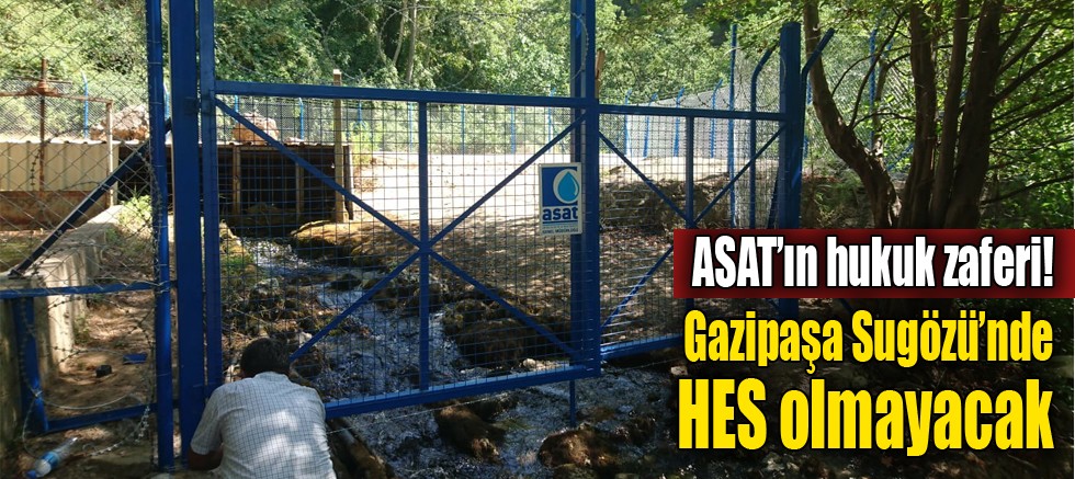 Antalya’nın Gazipaşa İlçesi’nde bulunan Sugözü kaynağının suyu üzerinde HES işletilmesi teşebbüsü Antalya Büyükşehir Belediyesi ASAT Genel Müdürlüğü’nün açtığı dava ile son buldu. Sugözü Kaynağı enerji üretimi amacıyla değil, içme ve kullanma suyu olarak bölge halkına hizmet vermeye devam edecek.