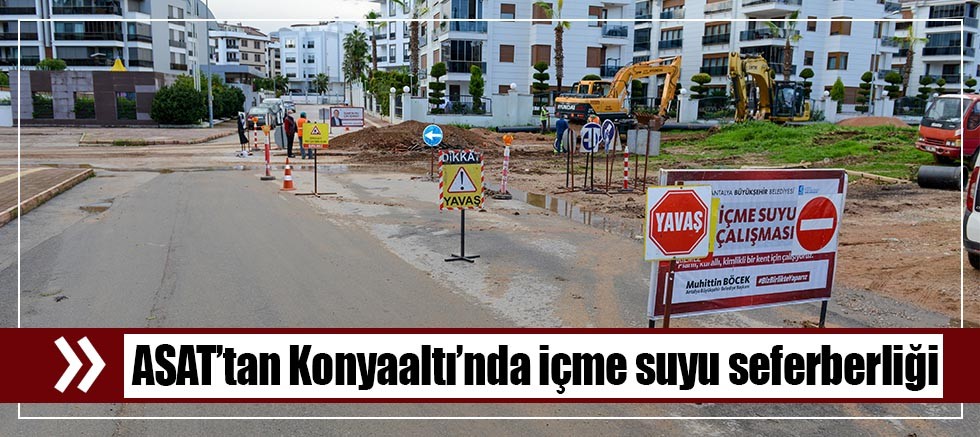 ASAT, 2019–2025 yılları arasında Konyaaltı ilçesinde içme suyu altyapısını güçlendirmek amacıyla önemli projelere imza attı. Bu dönemde ilçeye toplam 837 milyon 275 bin 996 TL tutarında içme suyu yatırımı gerçekleştirildi. Yatırımlar sayesinde eskiyen ve ekonomik ömrünü tamamlayan hatlar yenilenirken, yeni yerleşim alanlarının da içme suyu ihtiyacı karşılandı. Ayrıca bu süreçte altyapısı olmayan bölgeler de içme suyu şebekesine dahil edilerek, ilçede kesintisiz ve sağlıklı su hizmeti sunulması sağlandı. Yapılan çalışmalar, Konyaaltı’nın altyapı standardını yükselterek uzun vadeli bir içme suyu güvenliği oluşturdu.