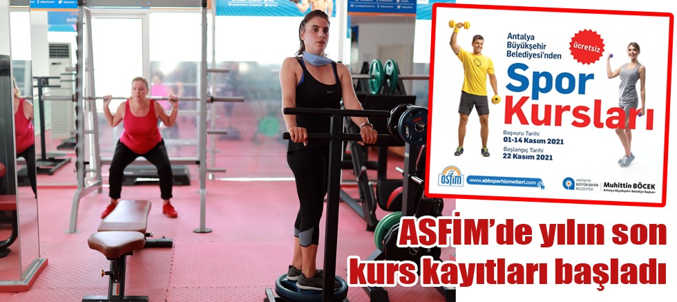 Antalya Büyükşehir Belediyesi'nin ücretsiz spor imkanı sunduğu Antalya Spor ve Fitness Merkezleri'nde (ASFİM) yılın son kayıtları başladı. Hijyen ve sosyal mesafe kuralları çerçevesinde verilen kurslar için 14 Kasım’a kadar online kayıt yapılacak, dersler ise 22 Kasım’da başlayacak.