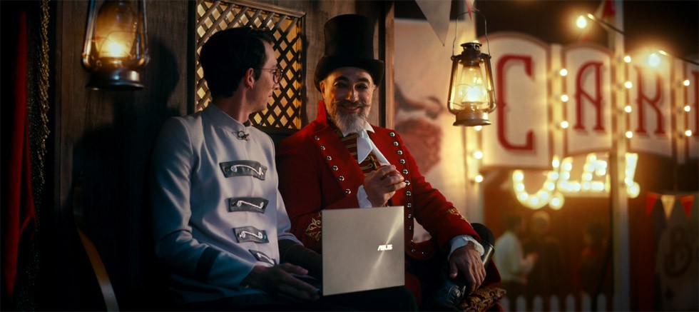 ASUS’un OLED Notebooklar için hazırlanan ve kısa sürede büyük beğeni toplayan yeni reklam kampanyası, bir sirk gösterisinden renkli sahnelerle ekrana geliyor. Özel bir platoda gerçeğe yakın bir sirk ortamı kurularak çekilen film için aralarında ateşbaz, pandomim sanatçısı gibi alanında profesyonel kişilerin de bulunduğu 50 kişilik bir figürasyon ekibi oluşturuldu. ASUS OLED’i Mete Gazoz temsil ederken, sihirbazlık geçmişi de bulunan oyuncu Selim Bayraktar, projeye özel hazırladığı sahne şovları ve çeşitli illüzyonlarla hünerlerini sergiledi.