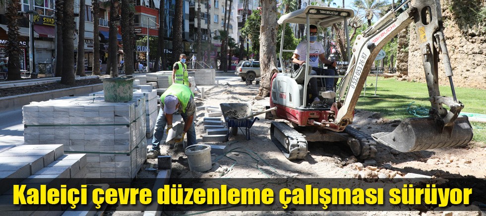 Proje kapsamında Kaleiçi’ne yeni bir yaya yolu kazandırılan Barbaros Mahallesi Kocatepe Geçidi Sokak ile Atatürk Caddesi arasında bağlantı yolunun çalışmaları tamamlanırken, Büyükşehir Belediyesi eski Hizmet Binası önündeki peyzaj çalışması için taş döşeme çalışması yapılıyor.
