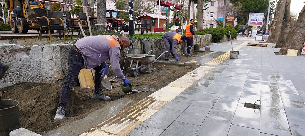 Isparta Belediyesi, Kutlubey Mahallesi 6 Mart Caddesi üzerindeki Atatürk Parkı altındaki kaldırımda yenileme çalışması gerçekleştiriyor. Çalışmalarda kaldırımdaki eskiyen ve deforme olan andezit taşları sökülürken, yeni andezit taş döşeniyor.