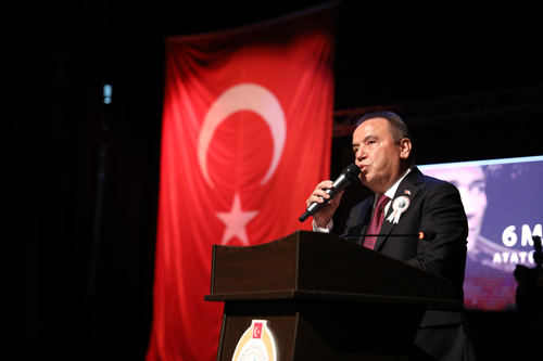 Antalya Büyükşehir Belediye Başkanı Muhittin Böcek de, 94 yıl önce Antalya halkının Ata’sını büyük bir coşkuyla karşıladığını hatırlatarak, “Bugün ben burada konuşmamı yapabiliyorsam her şeyimizi borçlu olduğumuz Gazi Mustafa Kemal Atatürk sayesindedir. Atamız kenti ziyaretinde “Hiç şüphesiz Antalya dünyanın en güzel yeridir” demiştir. Mavi gözlü dev adamın devrimlerine inanarak, Cumhuriyetimizin devrimlerine sahip çıkarak bu yolda yürüyemeye ant içiyorum” diye konuştu.