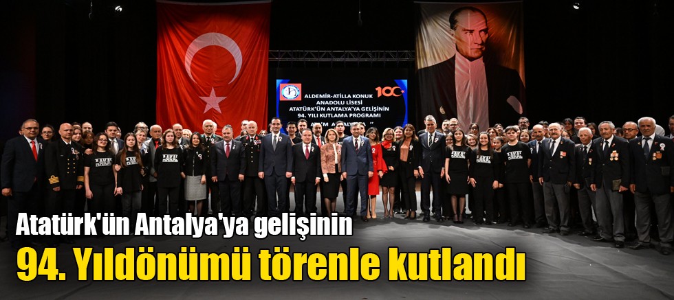 Antalya'yı 94 yıl önce ziyaret ederek, vatandaşların sevgi gösterileriyle karşılanan Gazi Mustafa Kemal Atatürk’ün, kenti ziyaretinin yıldönümü törenle kutlandı. Atatürk Kültür Merkezi'nde (AKM) düzenlenen törene Antalya Valisi Hulusi Şahin, Büyükşehir Belediye Başkanı Muhittin Böcek, protokol üyeleri, öğretmenler, öğrenciler ve vatandaşlar katıldı.