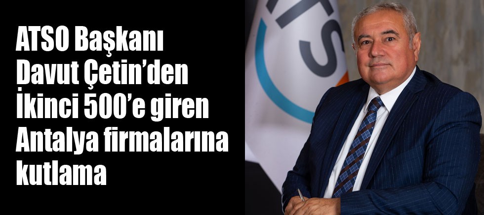 Antalya Ticaret ve Sanayi Odası Başkanı ve BAGEV Başkanı Davut Çetin, İstanbul Sanayi Odası 2021 Yılı Türkiye’nin İkinci 500 Büyük Sanayi Kuruluşu sıralamasına girme başarısı gösteren Antalya ve Isparta firmalarını kutladı.