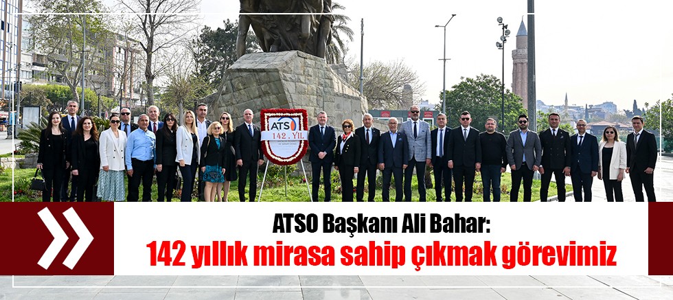 ATSO Başkanı Ali Bahar, ATSO’nun 142’nci yılını gururla kutladıklarını belirterek, “Geçmişimizle gurur duyarken, aynı zamanda geleceğe dair hedeflerimizi belirleyip, bu hedeflere ulaşmak için kararlılıkla çalışıyoruz. 142 yıllık değerli mirasa sahip çıkmak görevimiz” dedi.