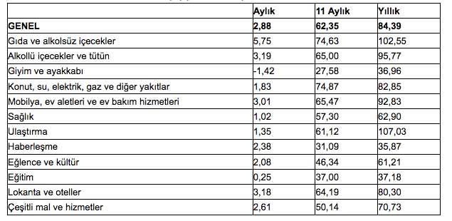 TÜRKİYE ENFLASYON RAKAMLARI (%) (KASIM 2022)