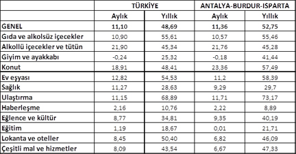 Bölgemizde enflasyonun aylık ve yıllık bazda Türkiye ortalamasının üzerinde olduğu görülmüştür. Bu oranlara göre Antalya, Isparta ve Burdur illerini kapsayan Batı Akdeniz Bölgesi, 26 bölge arasında aylık bazda on üçüncü, yıllık bazda ise sekizinci sırada yer almıştır.”